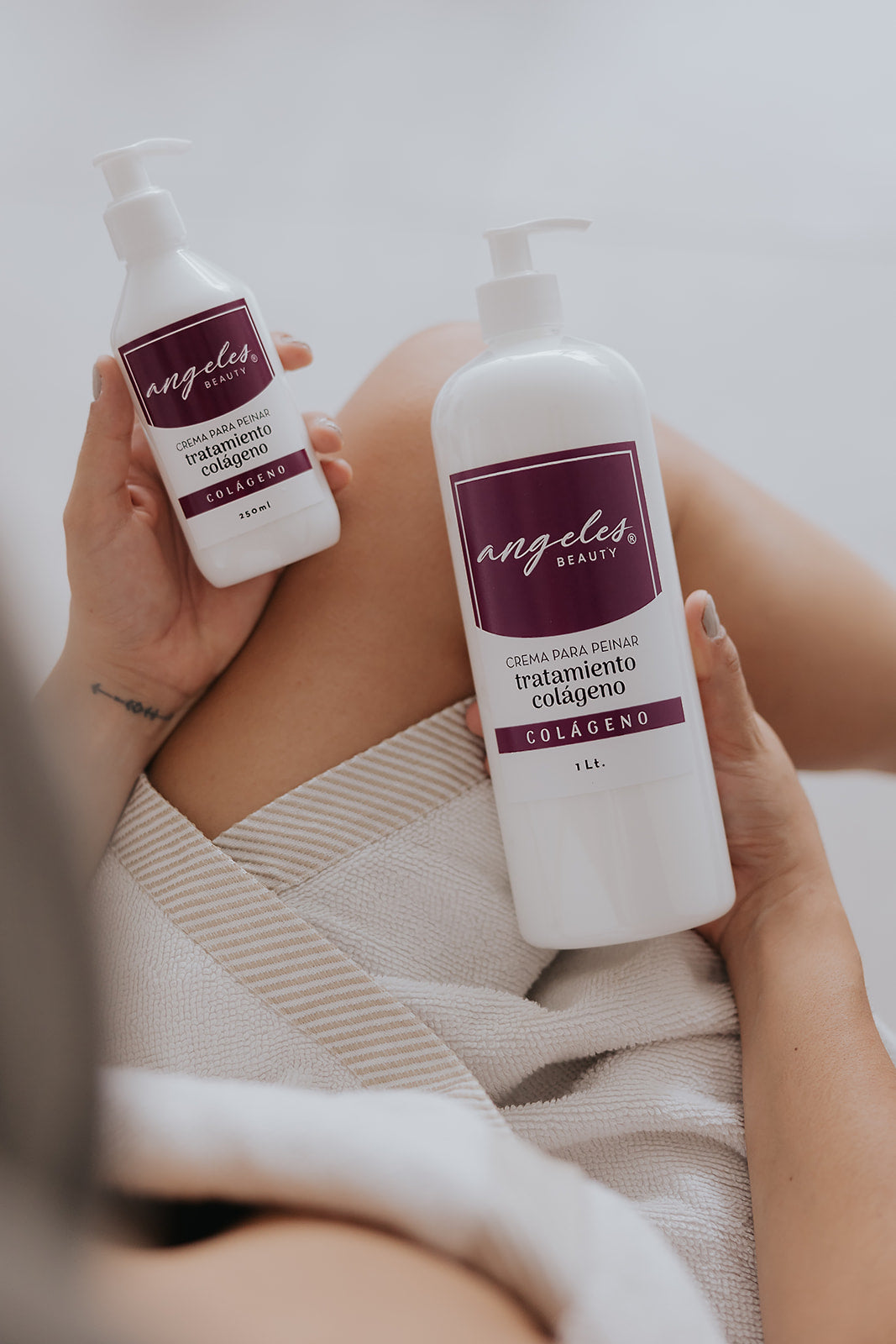 Crema Colágeno es una crema para peinar de uso diario especial para cabellos vírgenes, semi vírgenes. Su mezcla de activos naturales la hace una crema de textura ligera qué hidrata, acondiciona y desenreda el cabello. Ayuda a combatir la resequedad del cabello dándole brillo y suavidad sin dejarlo pesado ni grasoso.